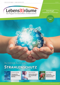„Lebens-t-räume“ in ihrer Existenz gefährdet sind, denn viele von Ihnen sind mit uns älter geworden, können teilweise nur noch schwer lesen und verabschieden sich teilweise mit rührenden Worten, weil ihnen die Zeitschrift ans Herz gewachsen ist – und nur die Besinnung auf „Herz, nimm Abschied und gesunde“ ein Loslösen ermöglicht. – Solange Sie nicht an diesem Punkt sind, schenken Sie uns bitte weiterhin Ihre Energie in Form von Anzeigen, Public Relations, Spenden und vor allem im Beibehalten Ihres Lebens-t-räume-Abonnements.